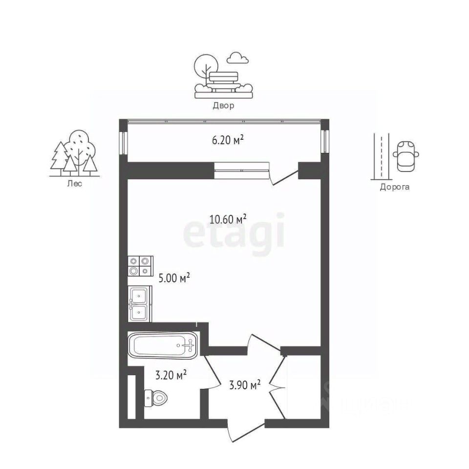 Продаётся уютная студия с просторной панорамной лоджией в малоэтажном жилом комплексе "Зелёный", расположенном в живописном районе города. Рядом с парком и окружён лесным массивом. Это идеальное место для тех, кто ценит комфорт и спокойствие.