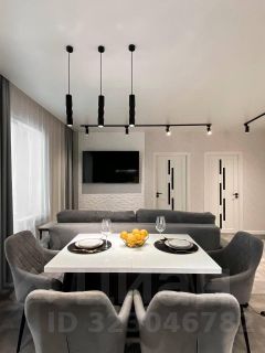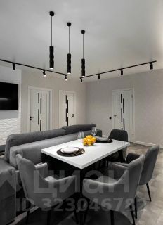 Вся квартира оборудована техникой для комфортного проживания: два телевизора (55 и 65 дюймов), стиральная и сушильная машинки, встроенная микроволновая печь, духовка, холодильник, варочная панель, вытяжка и посудомоечная машинка на 60.