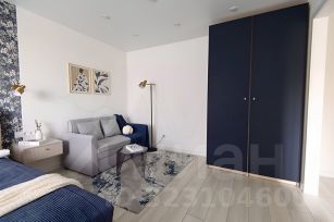 + Просторная спальня с гостиной зоной: большая двуспальная кровать 160х200 с идеальным матрасом, подъёмным механизмом и широкими ящиками для хранения, рабочая зона, ТВ зона с 50" смарт-телевизором на Android и удобной тумбой, двуспальный раскладной диван 140см, вместительный гардеробный шкаф, разные сценарии освещения, умная люстра на пульте с возможностью подключить к "Алисе", блэкаут шторы.