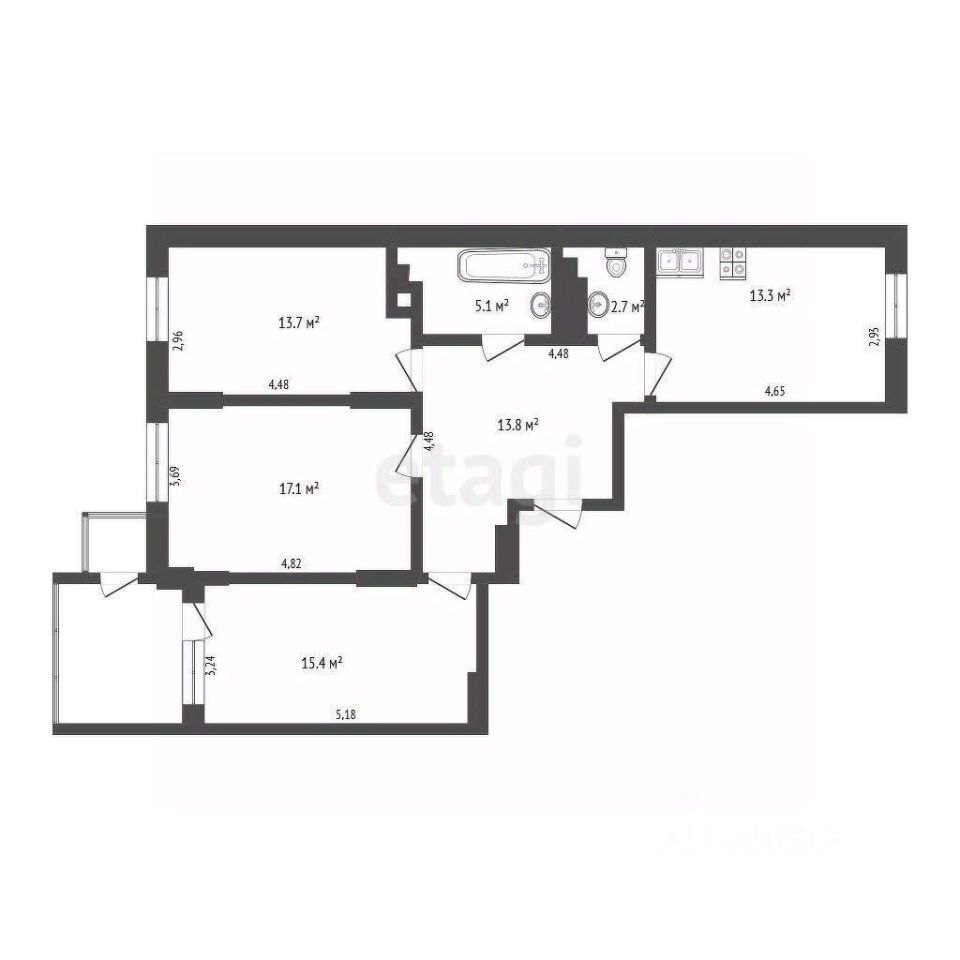81 кв.м. + площадь балкона.