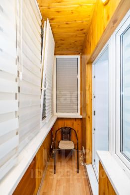 БАЛКОН (S-2,8 кв.м.) с выходом из зала, сделан теплый пол, положен ламинат, пластиковые окна, стены обшиты стеновыми панелями ДСП под дерево, выведено освещение.