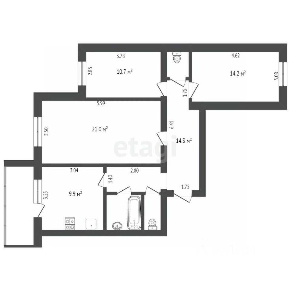9,9 м²