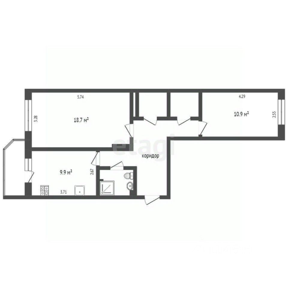 • Общая площадь: 59,9 м² (без учёта лоджий)
