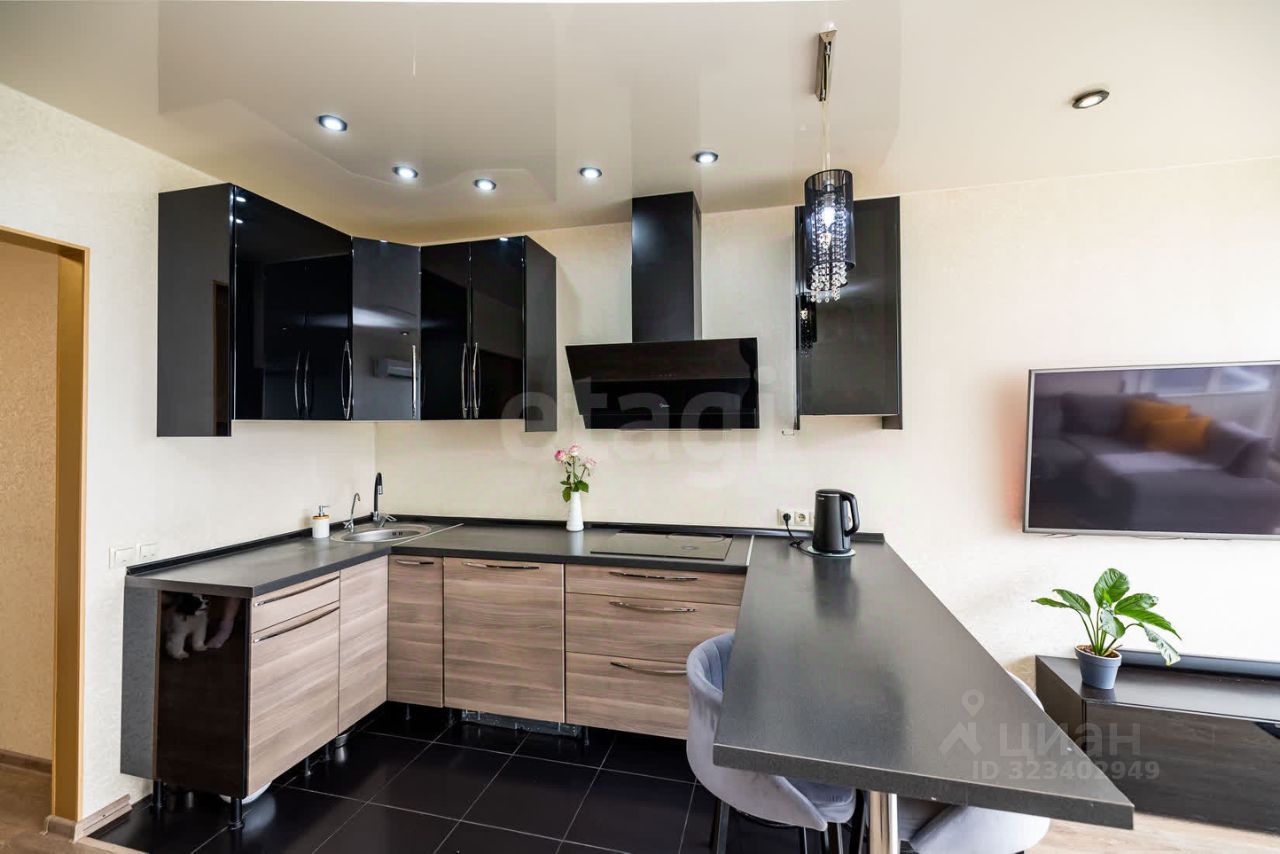 В квартире очень удобная продуманная планировка: просторный холл, оборудованная гардеробная, большой совместный санузел, отдельная спальня и просторная кухня - гостиная с панорамным остеклением - сердце этого дома!