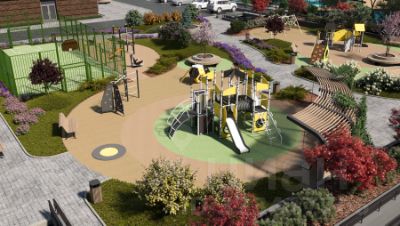 - Для детей разного возраста есть современные игровые и спортивные площадки с безопасным покрытием.