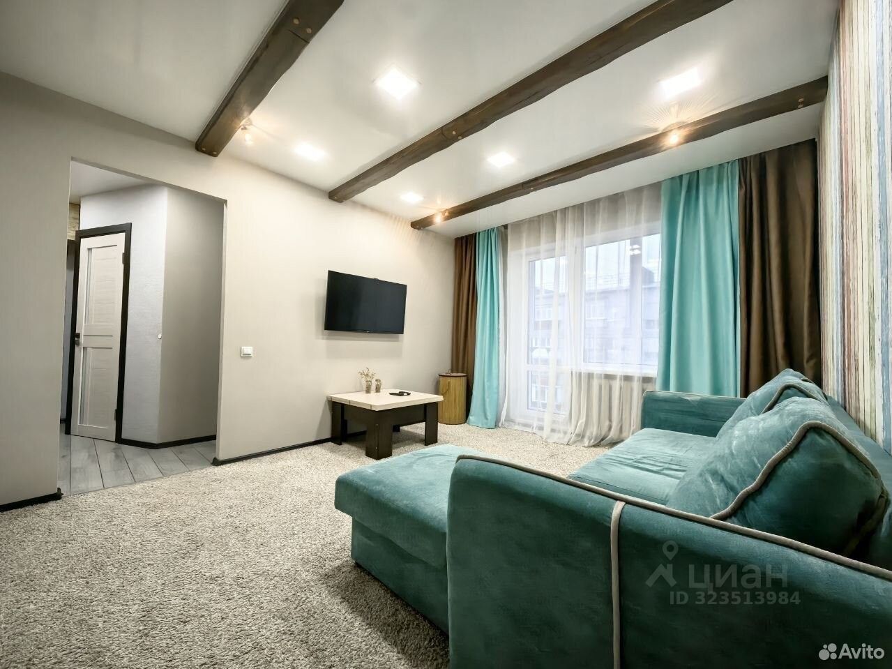 - 2-х спальный раскладной диван, раскладной стол два в одном, телевизор.