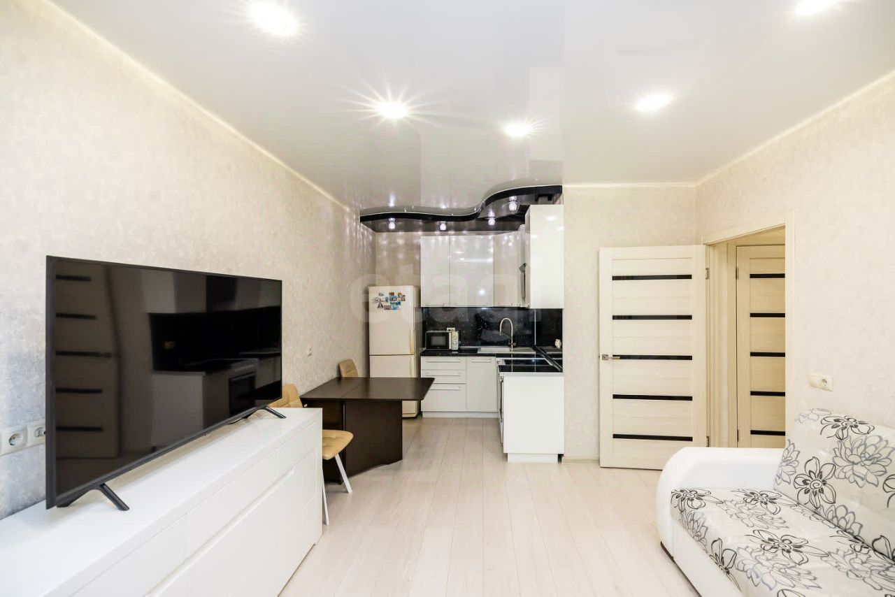 Удобная планировка формата 2+ с кухней-гостиной и двумя комнатами. Из гостиной выход на лоджию с панорамным видом. Есть гардеробная комната для удобного хранения вещей. Санузел просторный совмещённый. Ремонт выполнен в спокойных светлых тонах, пол застелен качественным ламинатом. При продаже останется мебель и техника, что позволит заехать и жить без дополнительных вложений.