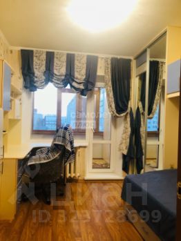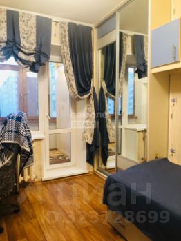 Детская комната (10,7 кв.м.) с выходом на лоджию. Гармонично разместились письменный стол, кровать, зеркальный шкаф и ящики.