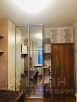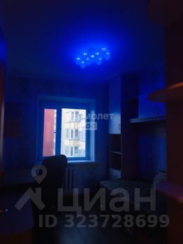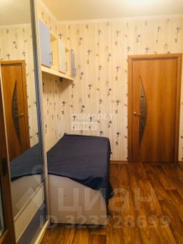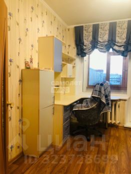 Третья комната (11,0 кв.м.) вместила в себя письменный стол, кровать, зеркальный шкаф и ящики. Люстра с вариациями освещения.
