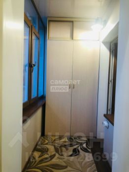 Лоджия: установлен тройной стеклопакет с ламинацией под дерево, эффект светоотражения, фурнитура "под золото". Теплый пол, освещение. Установлен вместительный шкаф.