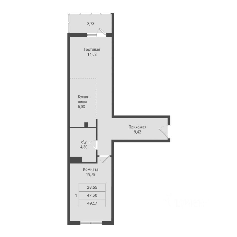 Общая площадь49,17 м²