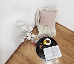 • В зале и спальне — ламинат высокого качества, в кухне и коридоре — керамическая плитка.