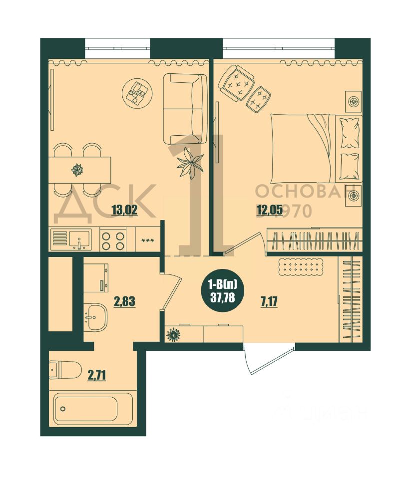 Общая площадь37,78 м²