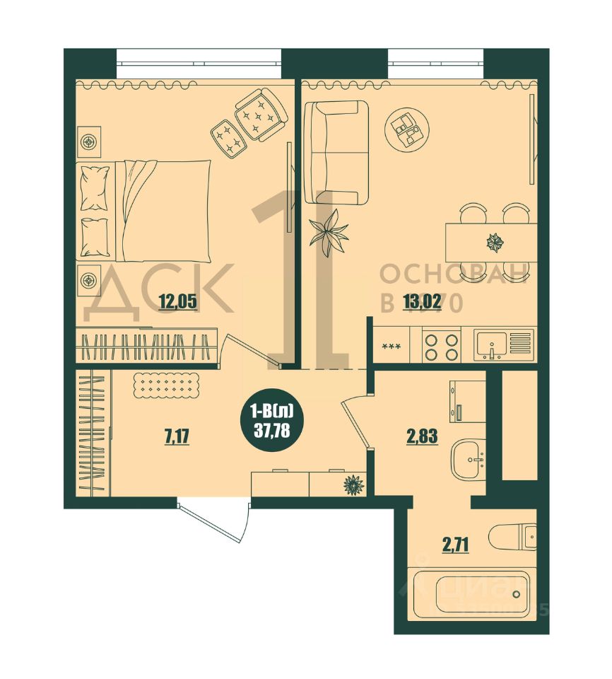 Общая площадь37,78 м²