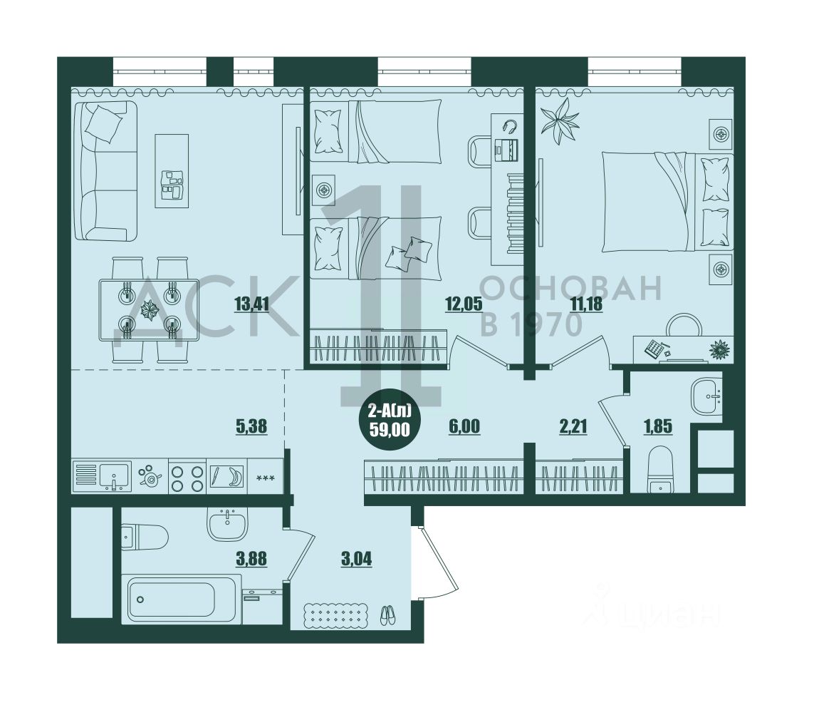 Продаётся 2-комнатная квартира в строящемся доме (Дом 4.3), срок сдачи: II-кв. 2026, общей площадью 59 кв.м., на 11 этаже. Новый жилой комплекс "Крылов" от застройщика "ДСК-1" расположен по адресу: г. Сургут, улица Крылова.