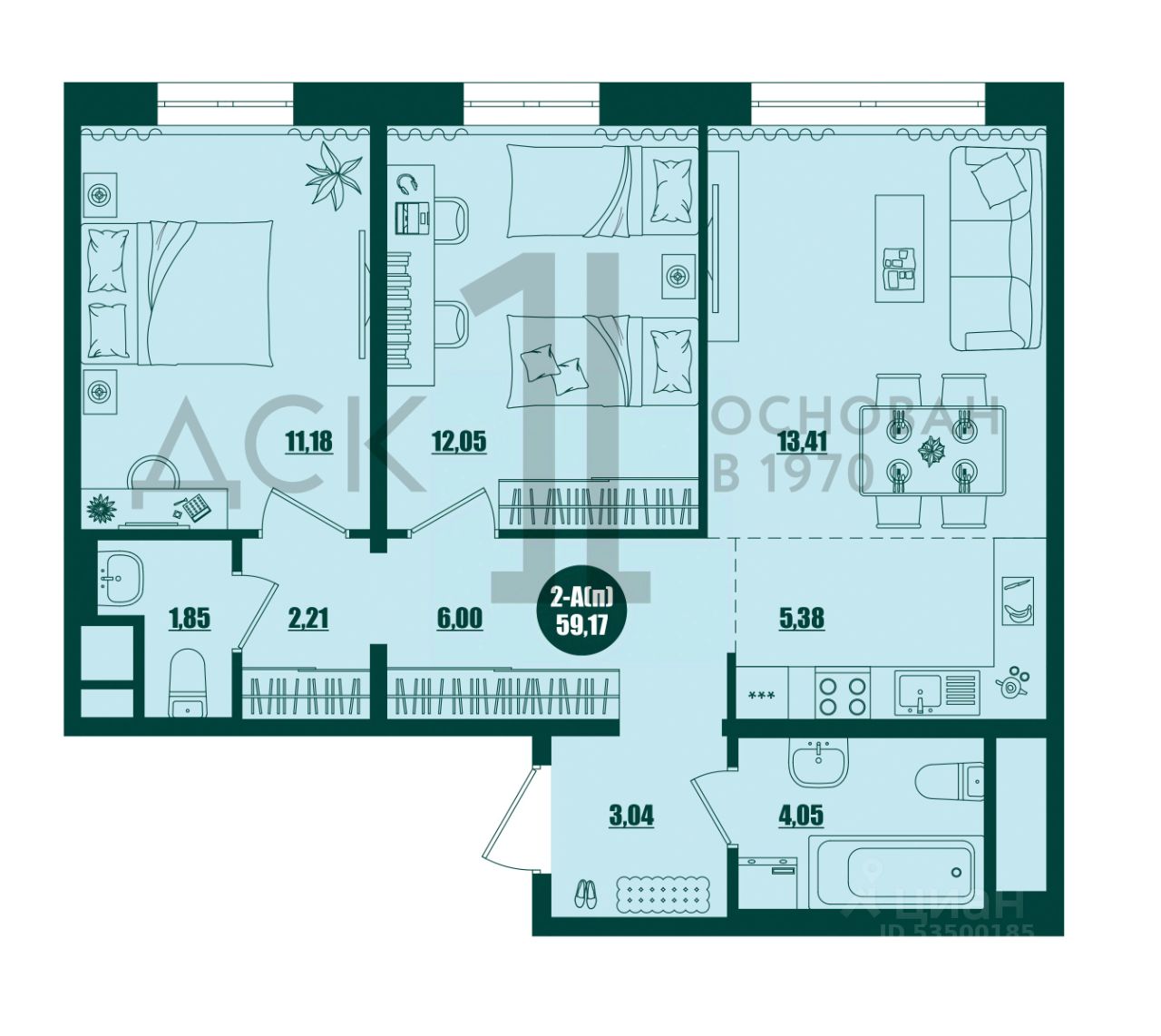 Продаётся 2-комнатная квартира в строящемся доме (Дом 4.2), срок сдачи: I-кв. 2026, общей площадью 59.17 кв.м., на 5 этаже. Новый жилой комплекс "Крылов" от застройщика "ДСК-1" расположен по адресу: г. Сургут, улица Крылова.