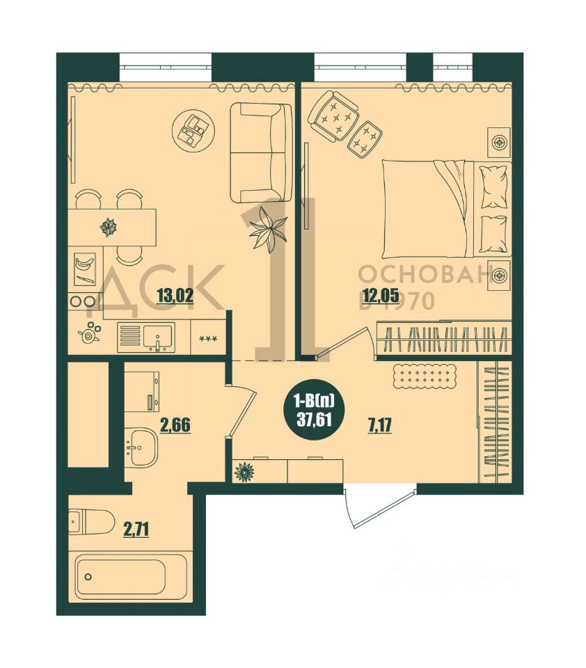 Продаётся 1-комнатная квартира в строящемся доме (Дом 4.2), срок сдачи: I-кв. 2026, общей площадью 37.61 кв.м., на 10 этаже. Новый жилой комплекс "Крылов" от застройщика "ДСК-1" расположен по адресу: г. Сургут, улица Крылова.