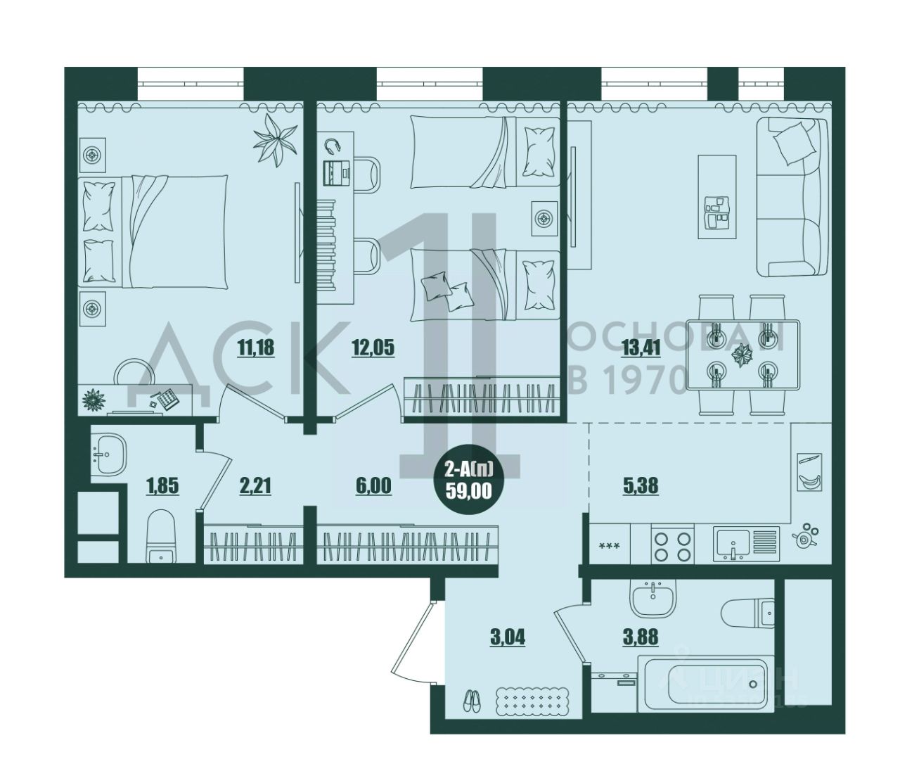 Продаётся 2-комнатная квартира в строящемся доме (Дом 4.2), срок сдачи: I-кв. 2026, общей площадью 59 кв.м., на 14 этаже. Новый жилой комплекс "Крылов" от застройщика "ДСК-1" расположен по адресу: г. Сургут, улица Крылова.