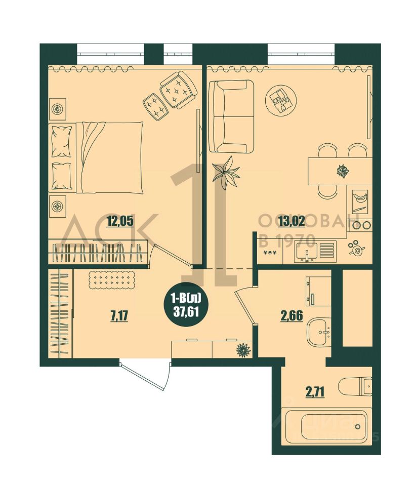 Продаётся 1-комнатная квартира в строящемся доме (Дом 4.2), срок сдачи: I-кв. 2026, общей площадью 37.61 кв.м., на 15 этаже. Новый жилой комплекс "Крылов" от застройщика "ДСК-1" расположен по адресу: г. Сургут, улица Крылова.