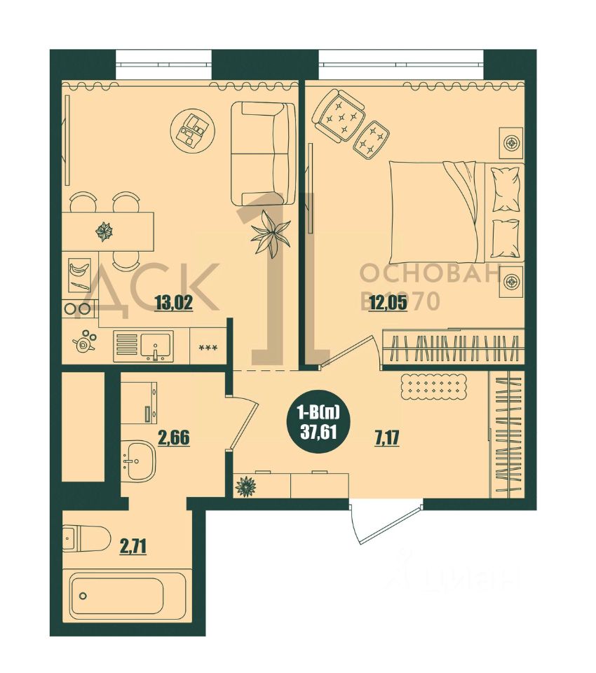 Продаётся 1-комнатная квартира в строящемся доме (Дом 4.2), срок сдачи: I-кв. 2026, общей площадью 37.61 кв.м., на 16 этаже. Новый жилой комплекс "Крылов" от застройщика "ДСК-1" расположен по адресу: г. Сургут, улица Крылова.