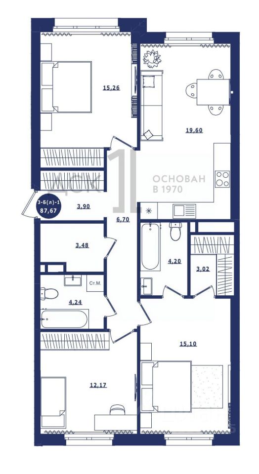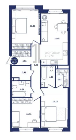 Продаётся 3-комнатная квартира в сданном доме (Дом 3 корпус 1,2), срок сдачи: IV-кв. 2023, общей площадью 87.67 кв.м., на 8 этаже. Новый жилой комплекс "Крылов" от застройщика "ДСК-1" расположен по адресу: г. Сургут, улица Крылова.