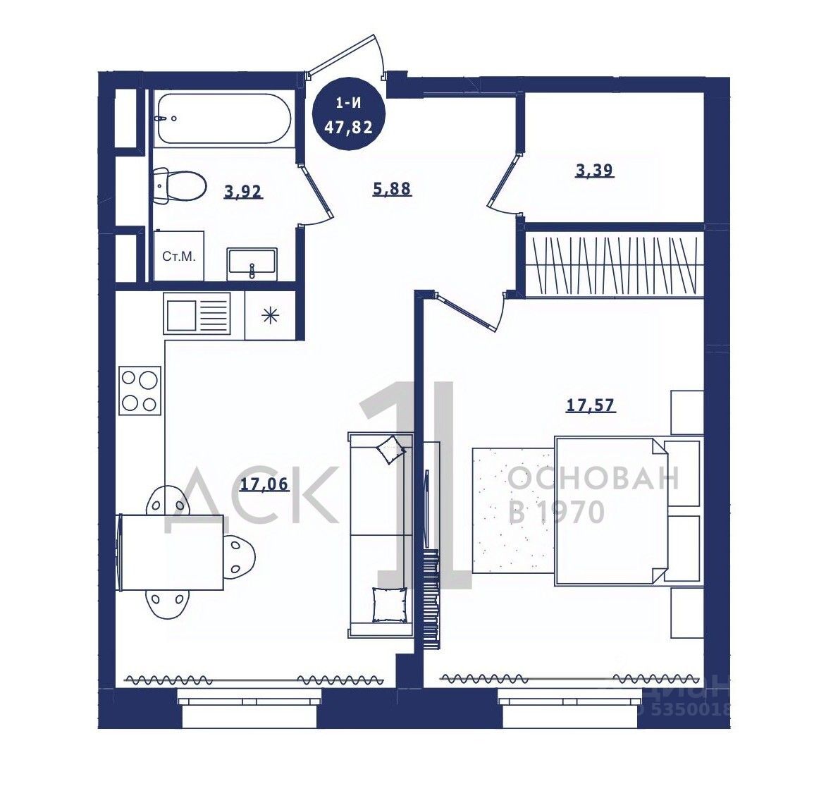 Общая площадь47,82 м²