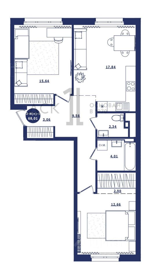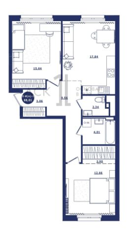 Продаётся 2-комнатная квартира в сданном доме (Дом 3 корпус 1,2), срок сдачи: IV-кв. 2023, общей площадью 68.01 кв.м., на 2 этаже. Новый жилой комплекс "Крылов" от застройщика "ДСК-1" расположен по адресу: г. Сургут, улица Крылова.