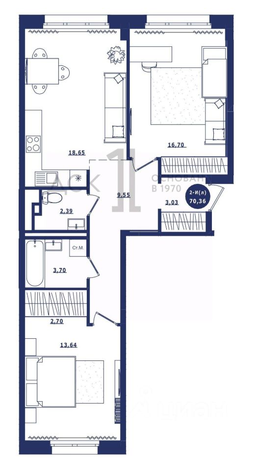 Продаётся 2-комнатная квартира в сданном доме (Дом 3 корпус 1,2), срок сдачи: IV-кв. 2023, общей площадью 70.36 кв.м., на 5 этаже. Новый жилой комплекс "Крылов" от застройщика "ДСК-1" расположен по адресу: г. Сургут, улица Крылова.