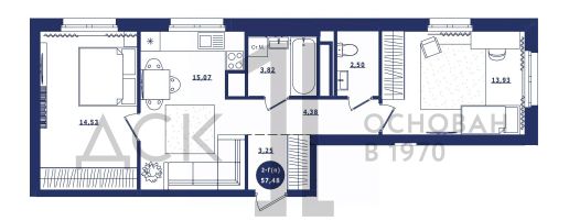 Продаётся 2-комнатная квартира в сданном доме (Дом 3 корпус 1,2), срок сдачи: IV-кв. 2023, общей площадью 57.48 кв.м., на 7 этаже. Новый жилой комплекс "Крылов" от застройщика "ДСК-1" расположен по адресу: г. Сургут, улица Крылова.