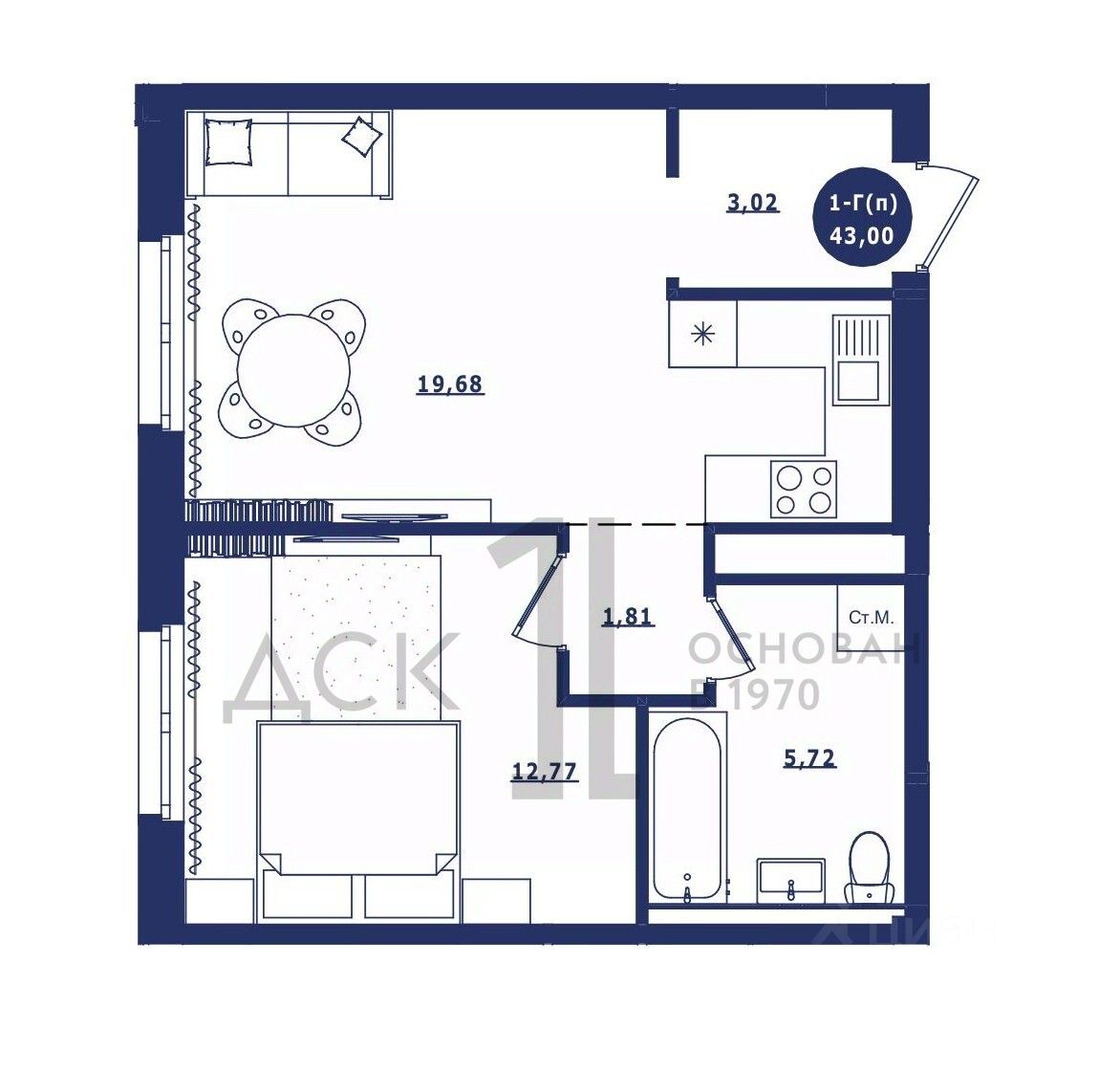 Продаётся 1-комнатная квартира в сданном доме (Дом 3 корпус 1,2), срок сдачи: IV-кв. 2023, общей площадью 43 кв.м., на 8 этаже. Новый жилой комплекс "Крылов" от застройщика "ДСК-1" расположен по адресу: г. Сургут, улица Крылова.