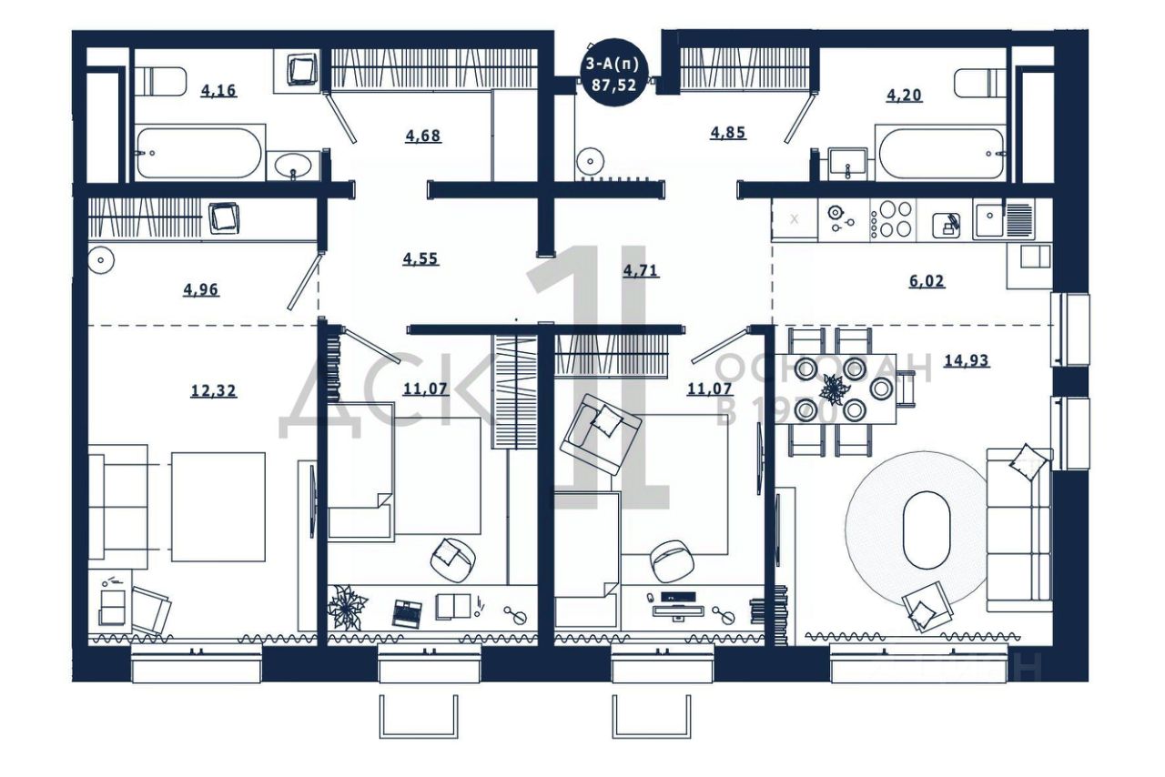 Общая площадь87,52 м²