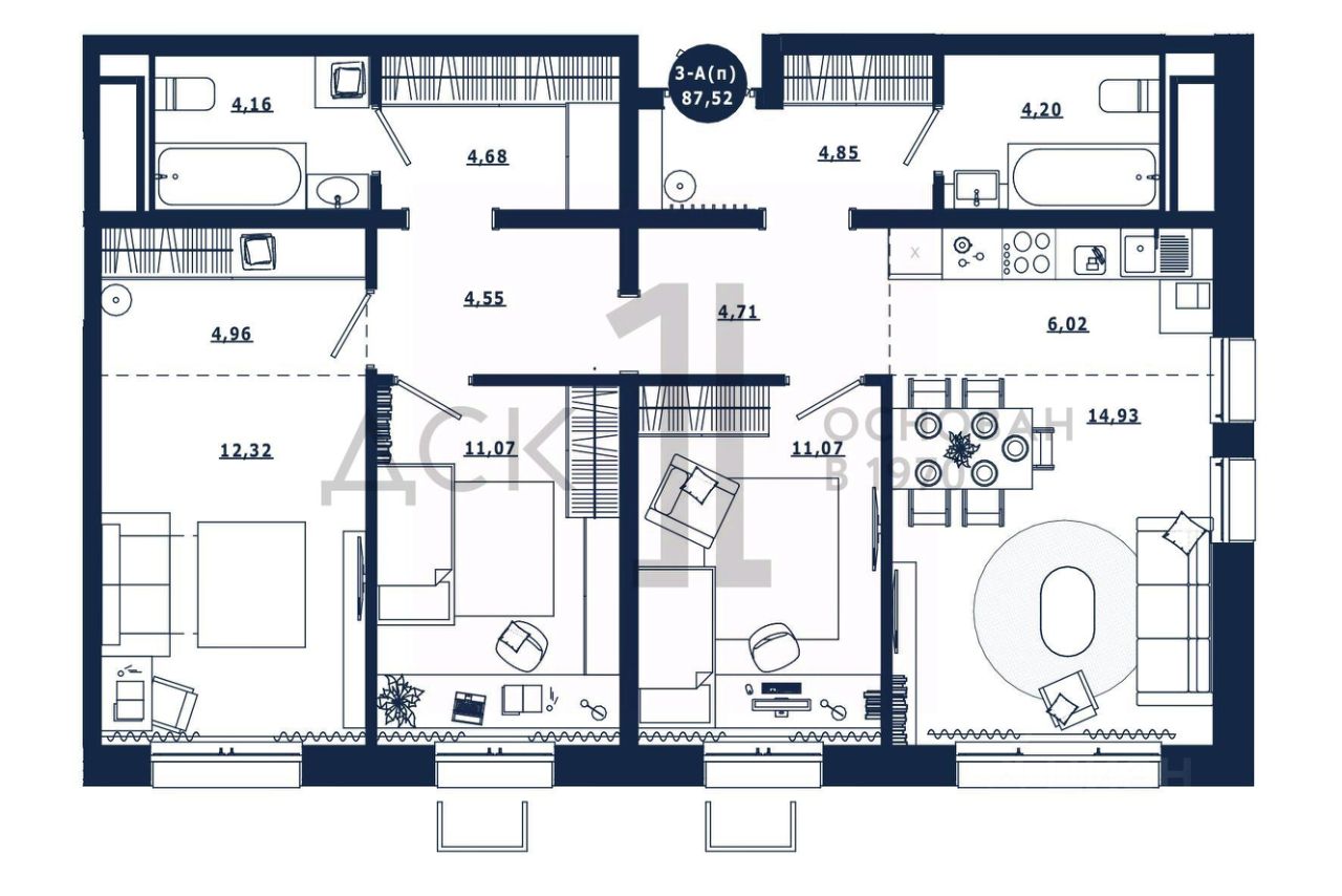 Продаётся 3-комнатная квартира в строящемся доме (Дом 1 корпус 1,2,3), срок сдачи: IV-кв. 2025, общей площадью 87.52 кв.м., на 9 этаже. Новый жилой комплекс "Крылов" от застройщика "ДСК-1" расположен по адресу: г. Сургут, улица Крылова.