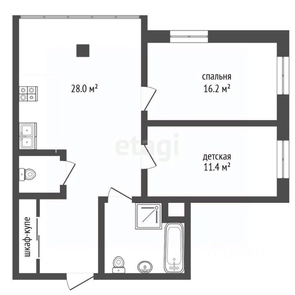 Квартира при входе имеет встроенный шкаф купе, что позволит разместить на хранение вещи, кроме этого в каждой спальне также имеется встроенный шкаф купе.