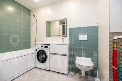 В квартире имеется два санузла: гостевой слева при входе, и справка санузел, который необходимо отметить как достойно спланированный комната чистоты. В ней и инсталляция, и душевая, и ванная, умывальник, где также размещена стиральная машина. Имеется бойлер на летний период отключения горячей воды, имеется встроенный теплый пол и теплая стена , которая служит полотенцесушителем. Вся техника остается.