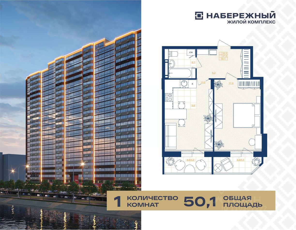 Продается уютная однокомнатная видовая квартира 18 площадью 50,1 кв.м. с большой лоджией и просторной кухней-гостиной площадью 18 кв.м., в жилом комплексе "Набережный". Общая площадь квартиры — 50,1 кв.м., жилая — 30,5 кв.м. Это идеальное место для комфортной жизни вашей семьи!