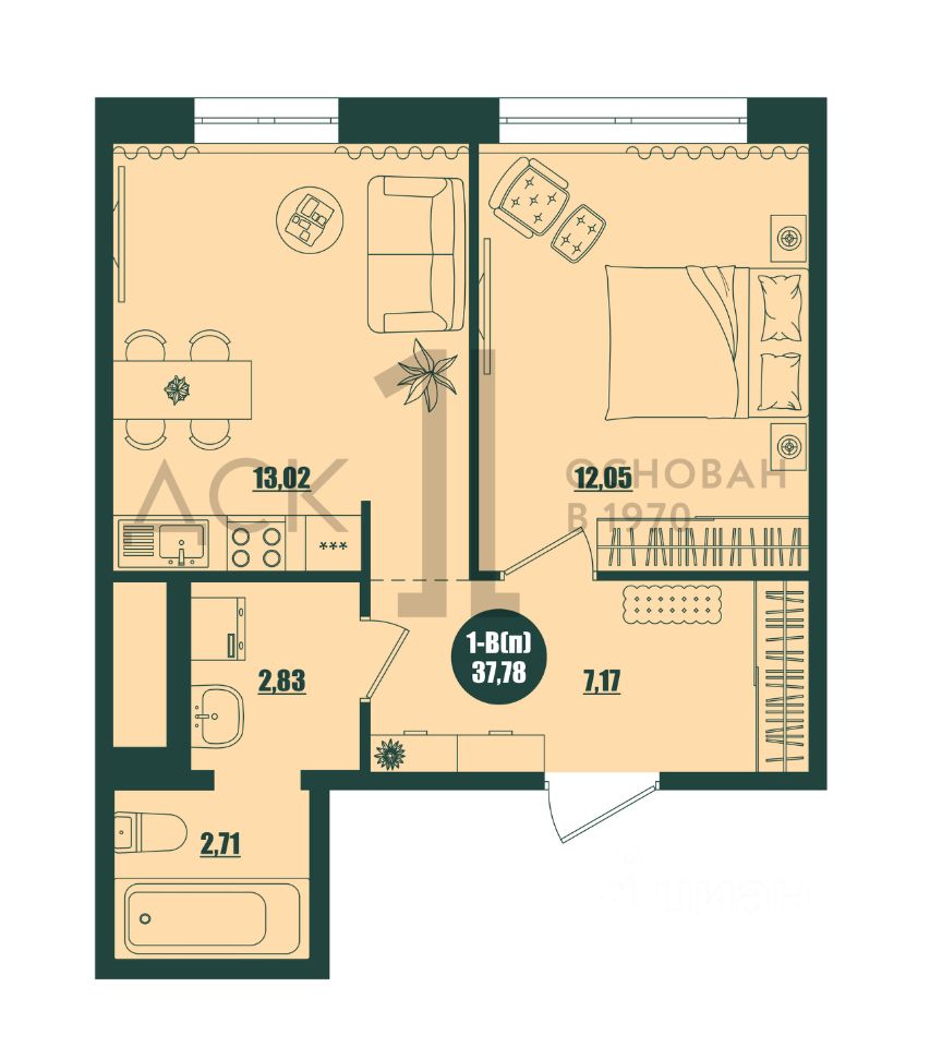 Продаётся 1-комнатная квартира в строящемся доме (Дом 4.3), срок сдачи: II-кв. 2026, общей площадью 37.78 кв.м., на 5 этаже. Новый жилой комплекс "Крылов" от застройщика "ДСК-1" расположен по адресу: г. Сургут, улица Крылова.