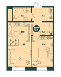 Продаётся 1-комнатная квартира в строящемся доме (Дом 4.2), срок сдачи: I-кв. 2026, общей площадью 42.01 кв.м., на 11 этаже. Новый жилой комплекс "Крылов" от застройщика "ДСК-1" расположен по адресу: г. Сургут, улица Крылова.