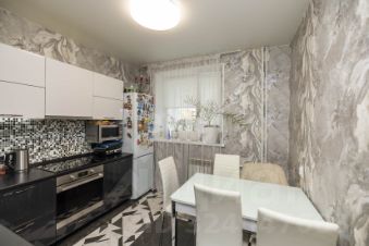 В квартире сделан капитальный ремонт: стены и полы выровнены, на стенах поклеены обои, на полу в кухне кафель, в других помещениях ламинат . Окна пластиковые. Заменены радиаторы. Санузел раздельный и полностью отделан кафелем.