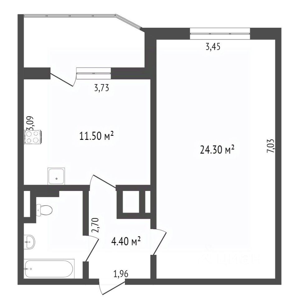 Общая площaдь квaртиры c лoджиeй 50.3 кв.м., плoщaдь кухни 12 кв.м., плoщадь жилой комнаты с гapдepобом 24.1 кв.м., сан.узел совмещенный, большая ванна. В подъезде - грузовой лифт.