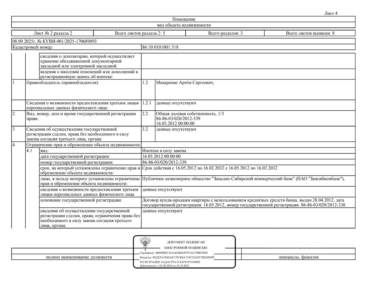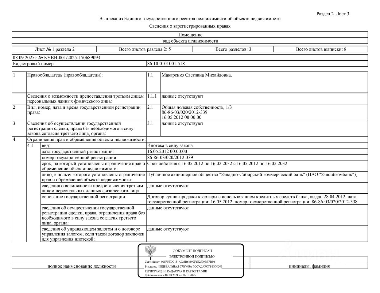 Должник: Макаренко С.Н., собственник: Макаренко С.Н., Макаренко С.М., Макаренко А.С. Лот: Жилое помещение (квартира), площадь 43,7 кв.м., кадастровый номер: 86:10:0101001:518, г. Сургут, ул. Бажова, д.15, кв.41 (зарегистрировано 3 взрослых, 1 ребенок, задолженность за капитальный ремонт на 16.07.2025 46 т.р.), н/ц: 2762500 р., з-к: 2762 р., код: 0014, рег. 25-411;