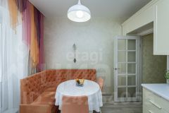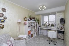Ремонт-стены выровнены, покрытие структурная краска. Заменена проводка. Полы стяжка, покрытие линолеум, потолки натяжные с точечными светильниками. Стены в ванной комнате выложены кафелем. Окна пластиковые. Все межкомнатные двери и встроенная корпусная мебель изготавливалась из качественного дерева по индивидуальному заказу. (например двери в большую комнату имеют 2 цвета , где каждый цвет подходит под цветовое сочетание помещения). На балконе установлены пластиковые стеклопакеты.