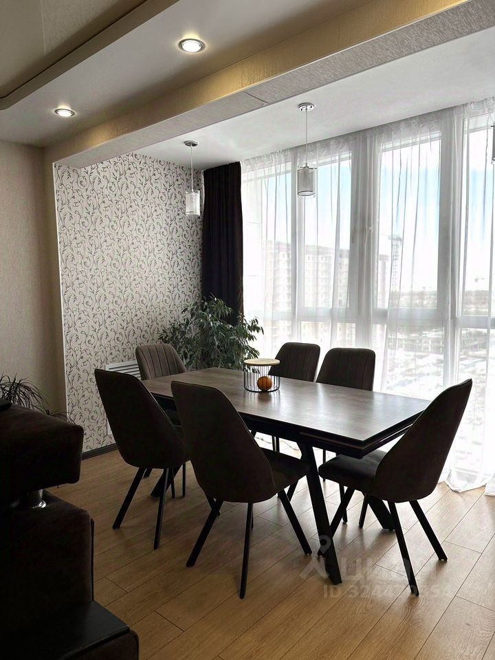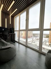 Продается современная 3-х комнатная квартира с двумя утепленными лоджиями c панорамными окнами, одна объединена с обеденной зоной, вторая используется в качестве кабинета.