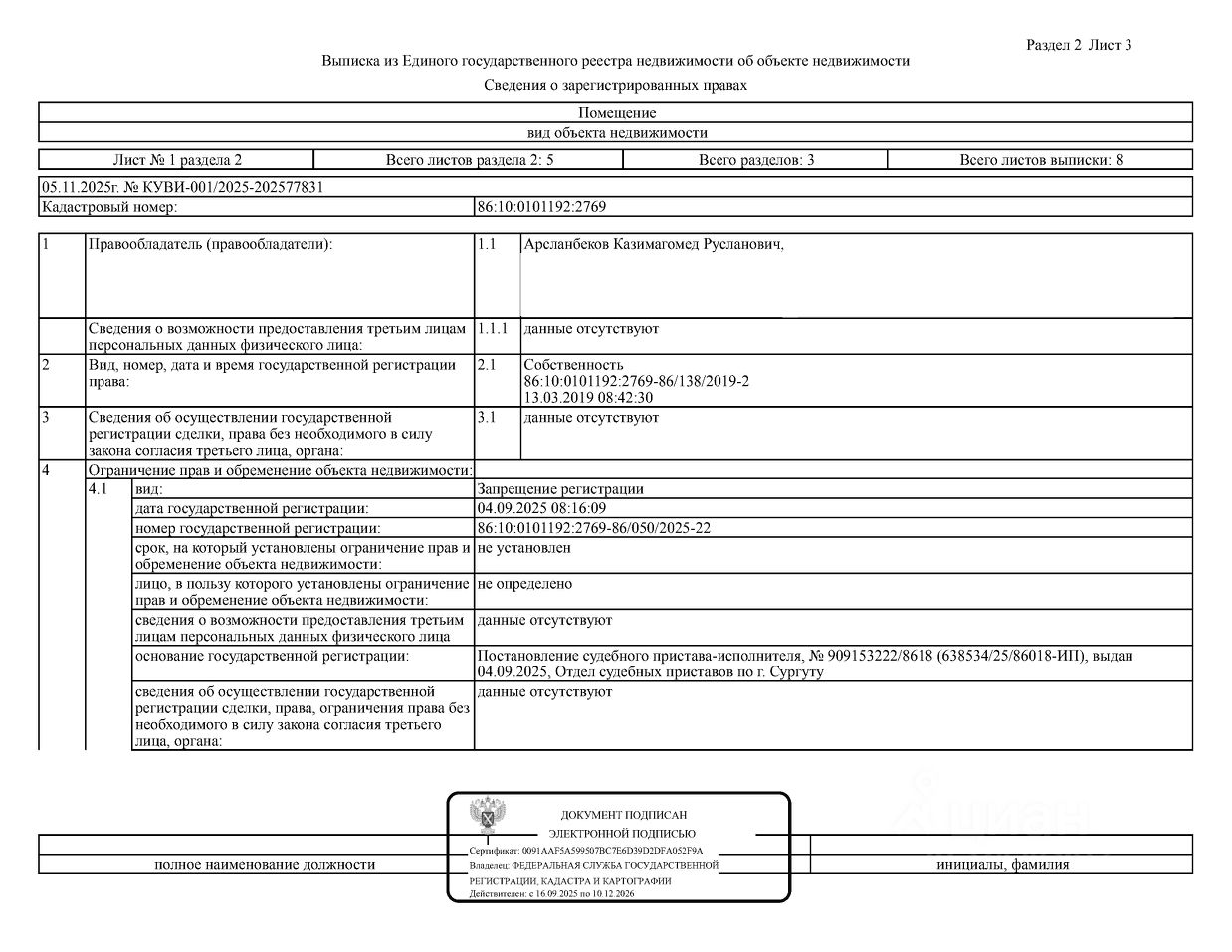 Должник: Арсланбеков К.Р., собственник: Арсланбеков К.Р. Лот: Жилое помещение (квартира), площадь 30,8 кв.м., кадастровый номер: 86:10:0101192:2769, г. Сургут, ул. Маяковского д. 27/1, кв.49 (информация о зарегистрированных лицах - отсутствует), н/ц: 2432800 р, з-к: 2432 р., код: 0014, рег. 25-534