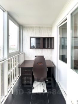 Комната зонирована: есть место для отдыха и спальная зона. Освещение точечное. Балкон можно использовать как рабочий кабинет.