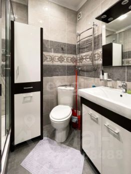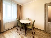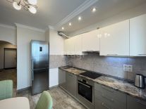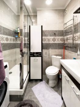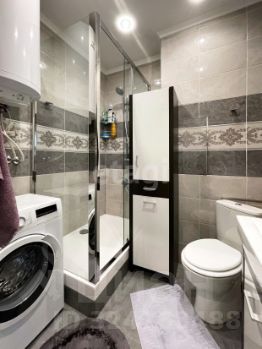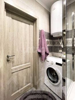 Выполнен качественный профессиональный ремонт: полы ламинат и плитка, стены покрашены в цвет "серый жемчуг", санузел совмещенный, качественный кафель. Душевая кабина в стиле хайтек. Есть стиральная машина.