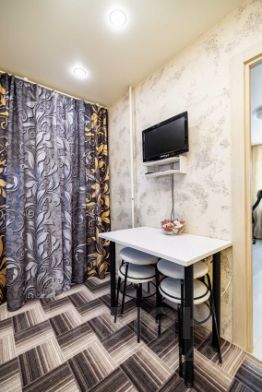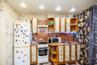 На кухне все остается: плита, вытяжка, холодильник, кухонный гарнитур. В комнатах есть диваны, шкафы, тумбочки, кресла.