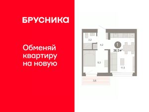 1-комн. квартира от застройщика с предчистовой отделкой в ЖК "Нефть" на 9 этаже. Общая площадь: 36.53 кв.м. Высота потолков 2.7 м.