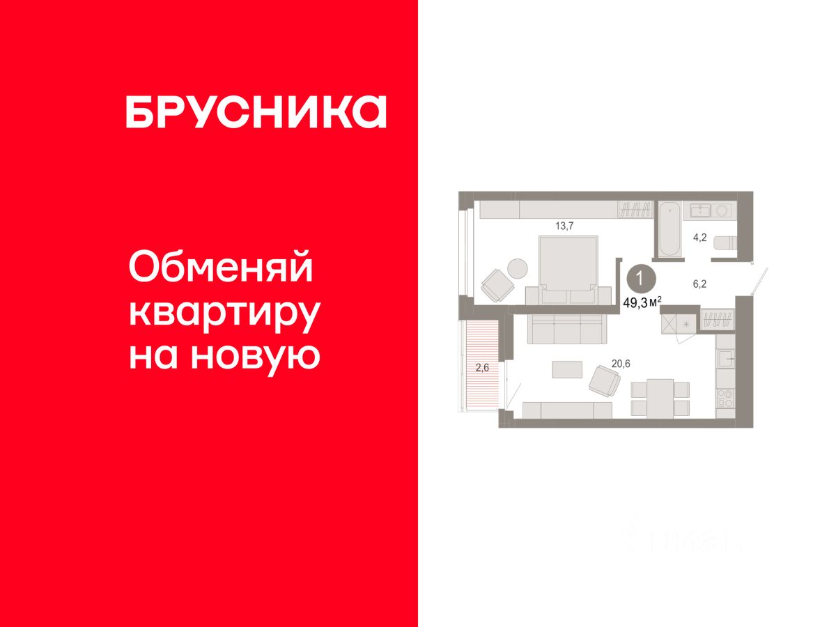 Квартира с кухней-гостиной и одной спальней в квартале "Нефть". Особенности планировки: гардеробная, лоджия, предчистовая отделка.