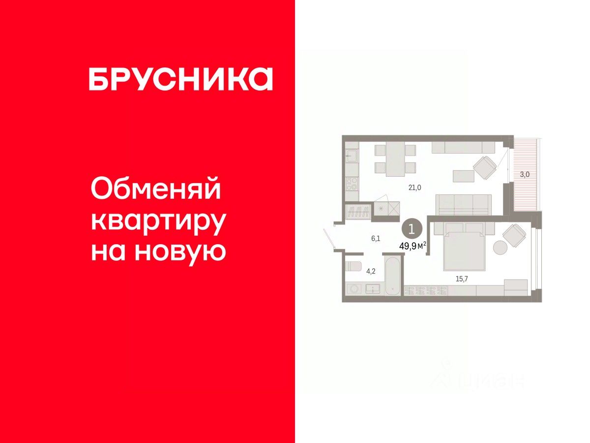 Квартира с кухней-гостиной и одной спальней в квартале "Нефть". Особенности планировки: балкон, гардеробная, предчистовая отделка.
