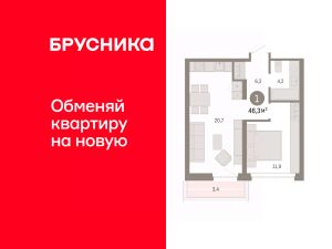 1-комн. квартира от застройщика с предчистовой отделкой в ЖК "Нефть" на 6 этаже. Общая площадь: 46.28 кв.м. Высота потолков 2.7 м.